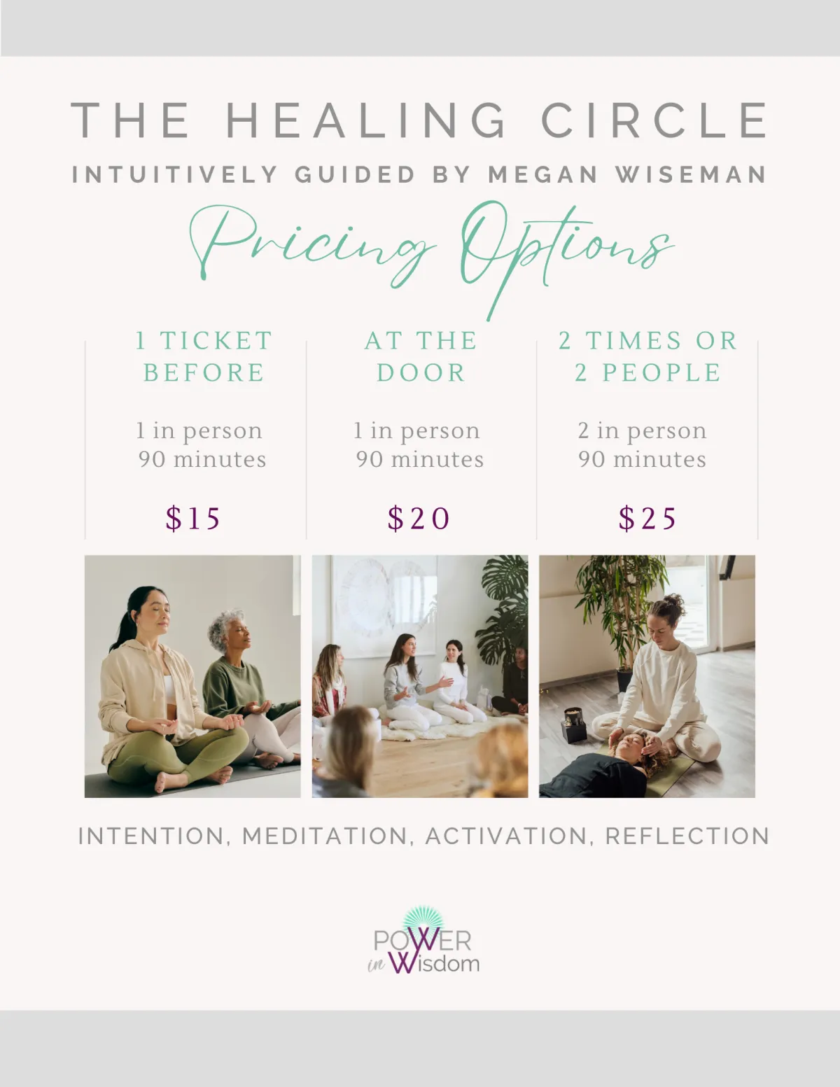 Join this gathering of Wise Women as we bring awareness to our inner wounds and awaken our wisdom. These sacred circles are meditative and reflective.